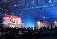 Der neue Zieleinlauf in die Rothenbach Halle der Messe Kassel erinnert an das Finale des Frankfurt Marathons.
